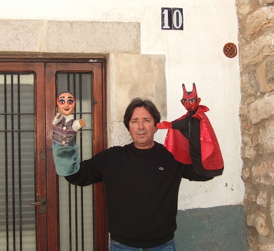 Fotografia davant la casa natal del titellaire que il·lustra l'article del Diari de Vilanova “Ramon Sánchez celebra els 60 anys entre titelles”, 27 de maig de 2016. |